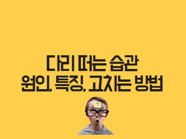 수능, 토익 시험 등을 볼 때 앞, 뒷자리에서 다리를 심하게 덜덜덜 떨어서 여간 성가셨던 경험, 다들 있지 않으신가요? 그런데 나 역시 나도 모르는 사이에 다리를 떨고 있진 않으신가요? 본 포스팅에서는 다리를 떠는 이유와 고치는 방법을 총정리해서 알아보도록 하겠습니다.